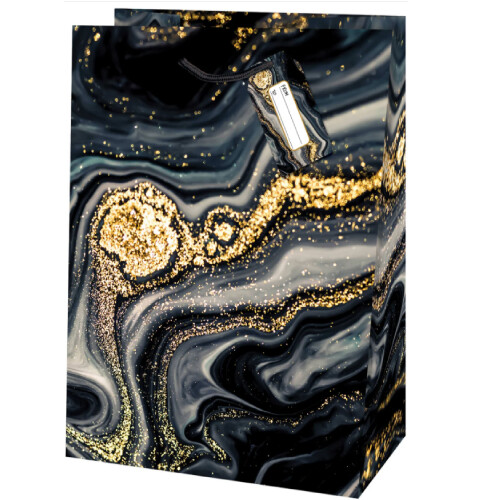 Táto praktická a pevná papierová darčeková taška s rozmermi 26,7 × 13,7 × 33 cm je ideálna na bezpečné a štýlové balenie väčších darčekov. Spevnené dno, pevné pletené uši a menovka na uchu zabezpečujú pohodlné nosenie aj osobné venovanie. Praktický formát uľahčí balenie a pomôže vytvoriť peknú a reprezentatívnu prezentáciu darčeka.