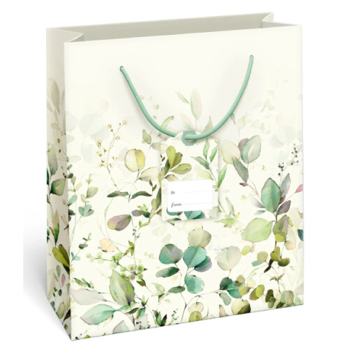 Táto praktická a pevná papierová darčeková taška s rozmermi 26,7 × 33 × 13,7 cm je ideálna na bezpečné a štýlové balenie väčších darčekov. Spevnené dno, pevné pletené uši a menovka na uchu zabezpečujú pohodlné nosenie aj osobné venovanie. Praktický formát uľahčí balenie a pomôže vytvoriť peknú a reprezentatívnu prezentáciu darčeka.