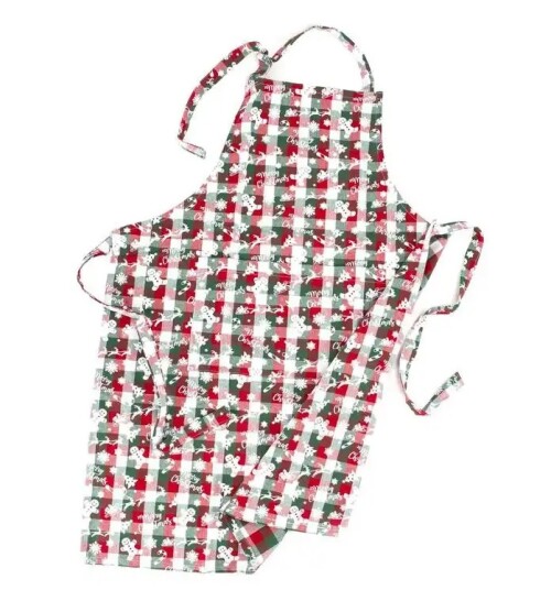 Vianočná kuchynská zástera s motívom vianočného perníčka v tradičných vianončých farbách.