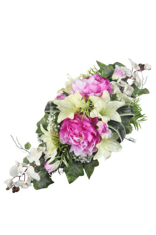 Aranžmán betón - peónie, ľalie, orchidea 83x37cm