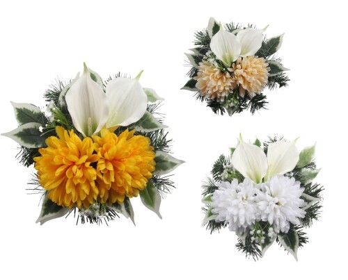 Aranžmán betón 331 chryzantéma, kála 30cm