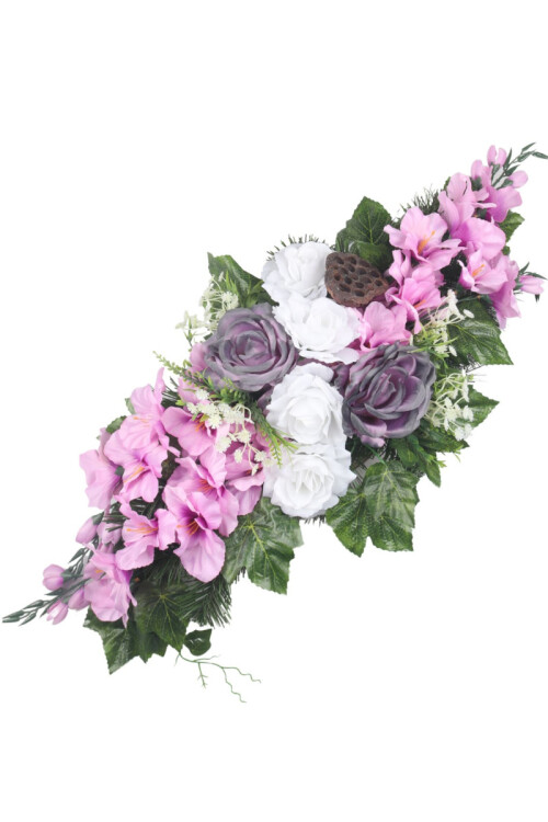 Aranžmán betón s gladiolami, ružami 98cm