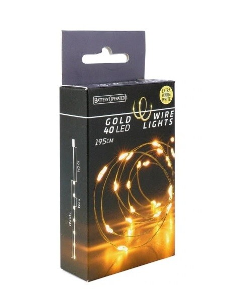 Vianočné osvetlenie na zlatom drôtiku. Napájané batériami, určené na použitie v interiéri. Majú veľmi príjemný teplý odtieň bielej, ktorý osvetlí nami pripravené dekorácie alebo bude dekoráciou sama o sebe. S ich pomocou vytvoríte jedinečnú vianočnú atmosféru.