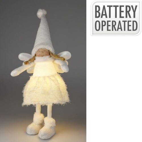 Vianočný anjel vytvorí vo vašom domove sladkú a hrejivú atmosféru. Táto vianočná bábika v tvare anjela je vyrobená z rôznych bielych polyesterových látok a má navyše LED svetielka. Telo anjelika svieti, keď je svetlo zapnuté. Je to stojaca anjelská bábika s prvkami ako veľký klobúk, hnedé vrkoče, šaty a dlhé nohy. Tento biely vianočný anjel má tiež špirálu, vďaka ktorej sa pohybuje hore a dole. Umiestnite vianočného anjela na komodu, TV stolík alebo kdekoľvek inde vo vašom dome a vychutnajte si jeho rozkošný vzhľad.