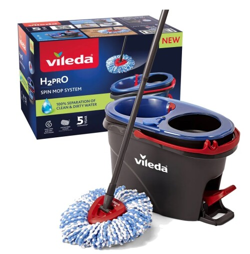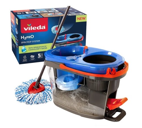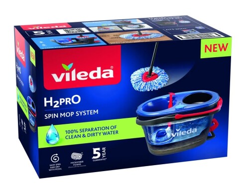 Rotačný mop H2Pro od značky Vileda je navrhnutý na efektívne a hygienické čistenie podláh. Vďaka inovatívnemu dvojkomorovému systému vedra je čistá a špinavá voda vždy oddelená, čo zaručuje, že budete vytierať iba čerstvou vodou.