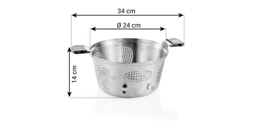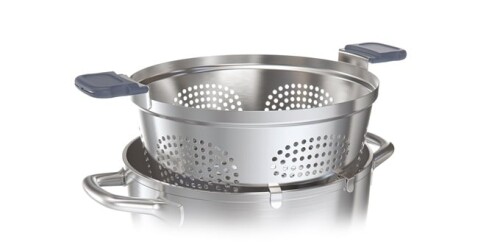 Nádoba na cedenie je vynikajúca na varenie a ľahké scedenie cestovín, zeleniny a iných jedál, v hrncoch s priemerom 24 cm bez pripaľovania potravín. Posuvné rukoväte umožňujú varenie so zdvihnutým vekom bez rizika vykysnutia. Obsahuje háčiky na zavesenie riadu na okraje hrnca a odkvapkávanie. Nádoba je vyrobená z kvalitnej nehrdzavejúcej ocele a žiaruvzdorného silikónu. Možno umývať v umývačke riadu.