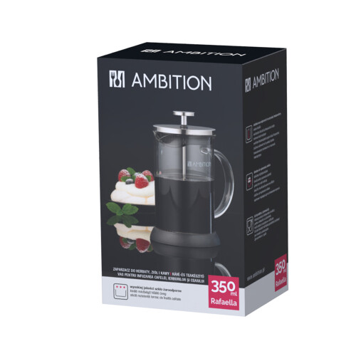 Kanvica na prípravu kávy Rafaella 350ml je vyrobená zo skla bórosilikátového, ktoré vydržiavá veľmi vysoké teploty, vložka je z vysoko kvalitnej nehrdzevejúcej ocele, má praktické sklenené uško.