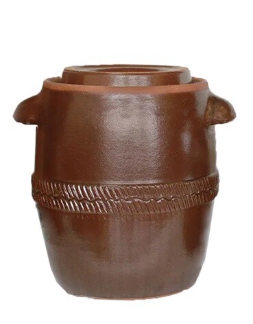 Keramický glazovaný sud na nakladanie kapusty, uhoriek a pod. s vekom. Slovenská výroba. Vyrobené tradičným spôsobom, prírodný glazovaný materiál.