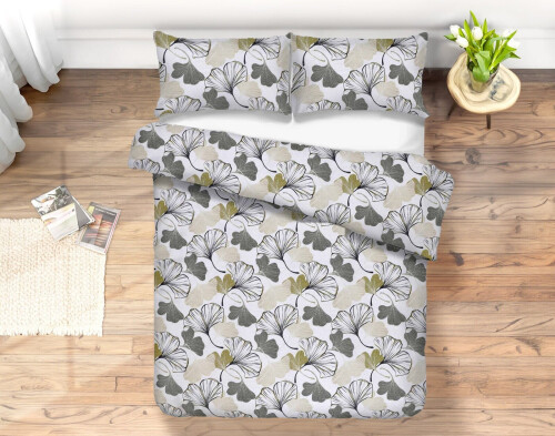 Bavlnené obliečky s nádhernou potlačou ginko listov v sivo-zelených odtieňoch prinesú do vašej spálne jemnosť a eleganciu.