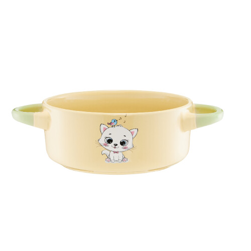 Miska s úchytmi as motívom mačiatka s vtáčikom je perfektnou nádobou pre každé malé dieťa. Jej zaoblený tvar, pastelové farby a dva bočné úchyty vytvárajú ideálne podmienky na výučbu samostatnosti pri jedle. Kameninová konštrukcia zaručuje odolnosť pri každodennom používaní a estetický vzhľad vnáša do detských jedál veselú atmosféru. Funguje skvele doma, ale aj na pikniku, v škôlke alebo na cestách.