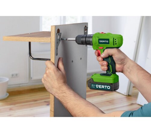 Aku skrutkovač, 52G290, VERTOje vybavená efektívnou batériou s napätím 20 V a kapacitou 1,5 Ah, ktorá je ako stvorená pre domáce použitie. Výrobok má dva prevody. Jeden beží od 0 do 400 ot./min a druhý od 0 do 1 500 ot./min. Vďaka nim prispôsobíte rozsah otáčok vykonávanej práci. Vŕtací skrutkovač VERTO má rozsah nastavenia krútiaceho momentu od 1 do 20. Maximálna hodnota pre mäkké vŕtanie je 28 Nm. a 44 Nm. pre tvrdé skrutkovacie aplikácie. Prístroj je možné použiť na vŕtanie dreva aj kovu. Výrobok je vyrobený z plastu, odolného voči poškodeniu. Pre pohodlie a komfort používania je rukoväť vŕtačky pokrytá mäkkými krytmi. Je tiež vybavený LED diódou, ktorá sa rozsvieti, keď je zariadenie v prevádzke.
