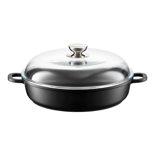 Panva sa rýchlejšie zahrieva a to šetrí čas i energie. Hrubé indukčné dno je odolné voči deformáciám. Panvica aj s pokrievkou môžete použiť v rúre.
