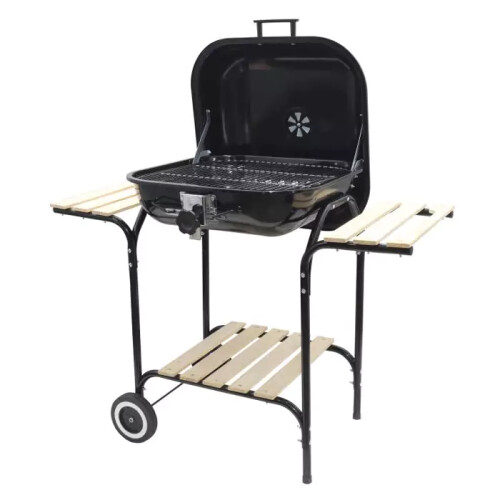 Veľký záhradný gril s pevnou konštrukciou a kolieskami pre jednoduchú manipuláciu. Poskytuje dostatočný priestor na grilovanie mäsa a zeleniny. Odolný voči poveternostným vplyvom, s praktickými poličkami a úložným priestorom na príslušenstvo. Ideálny na terasu alebo záhradu.